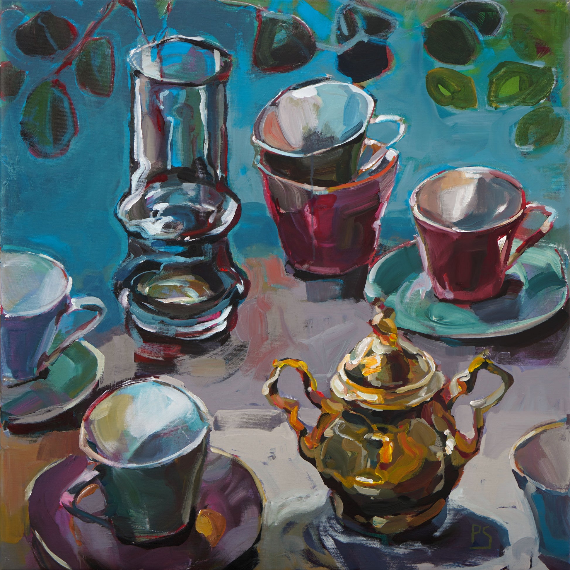 Ein Kunstwerk aus der Gemäldeserie „A bissl Gold“, inspiriert vom eleganten Lilienporzellan der Großmutter.