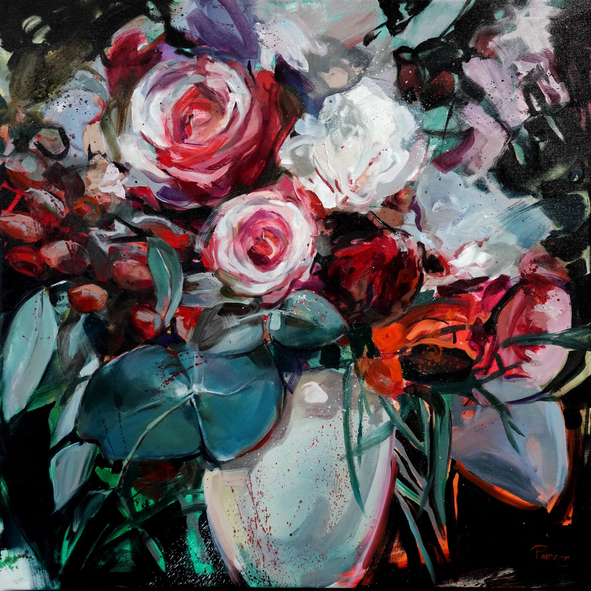 Erlebe die Neuinszenierung des Blumenmotivs in einer einzigartigen Verschmelzung von ABSTRAKTEN REALISMUS. Dieses Kunstwerk schafft mit seiner ausdrucksstarken Präsenz eine besondere Atmosphäre in deinem Zuhaus.